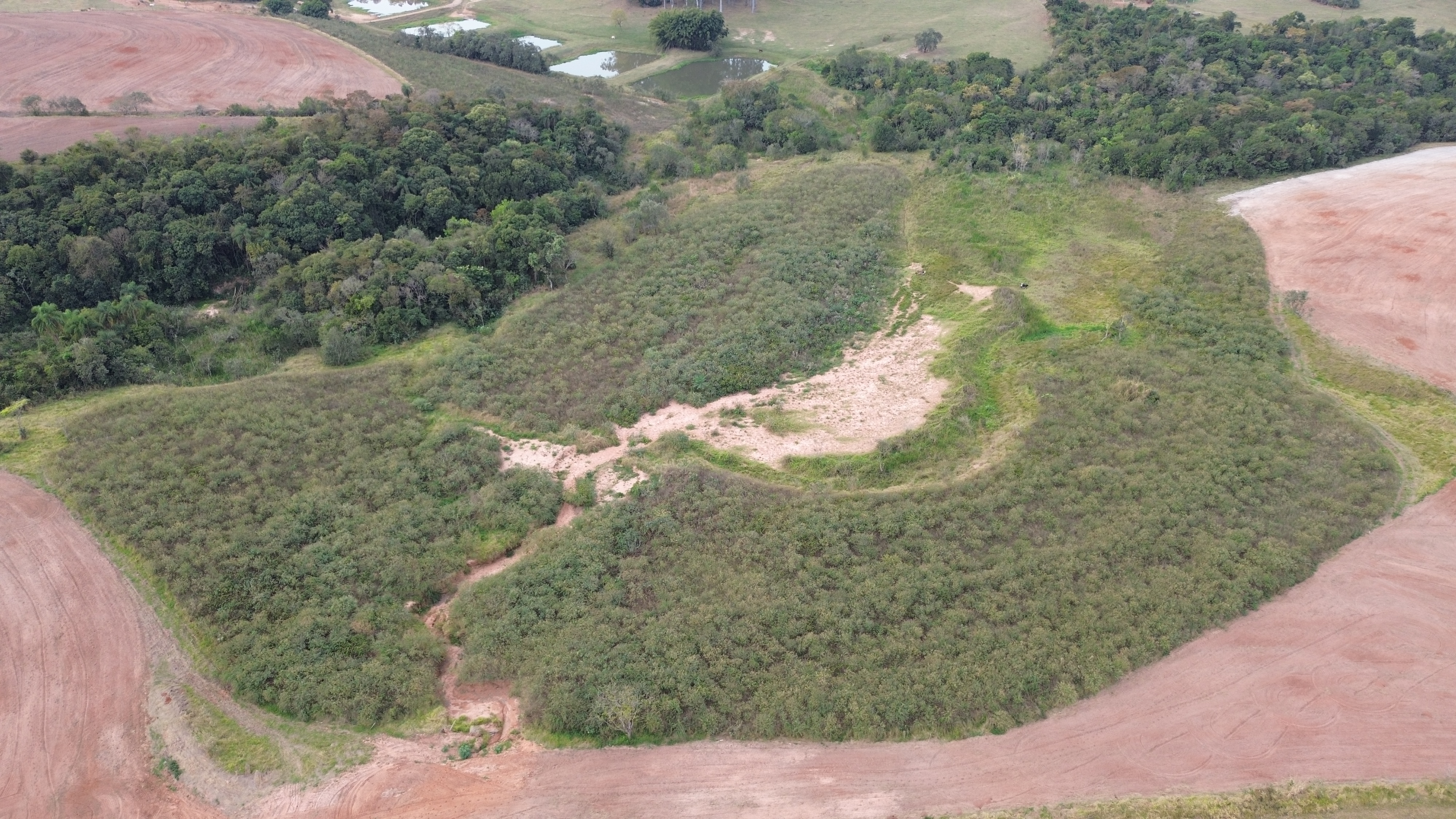 O plantio foi conduzido em dois momentos, o primeiro entre os dias 21 e 23 de novembro de 2023, sendo iniciado com semeadura mecanizada à lanço em área total e o segundo foi realizado no dia 23 de janeiro de 2024. Para o plantio mecanizado foi utilizado calcareadeira de esteira como implemento do trator para dispersão das sementes, a qual foi calibrada para determinar a quantidade em kg/m² a ser lançado de forma que disperse sobre toda área de restauração. Foram utilizadas 1.453,65 kg de sementes (58,33 kg/ha) de um total de 94 espécies de diferentes fases de ocupação e formas de vida.