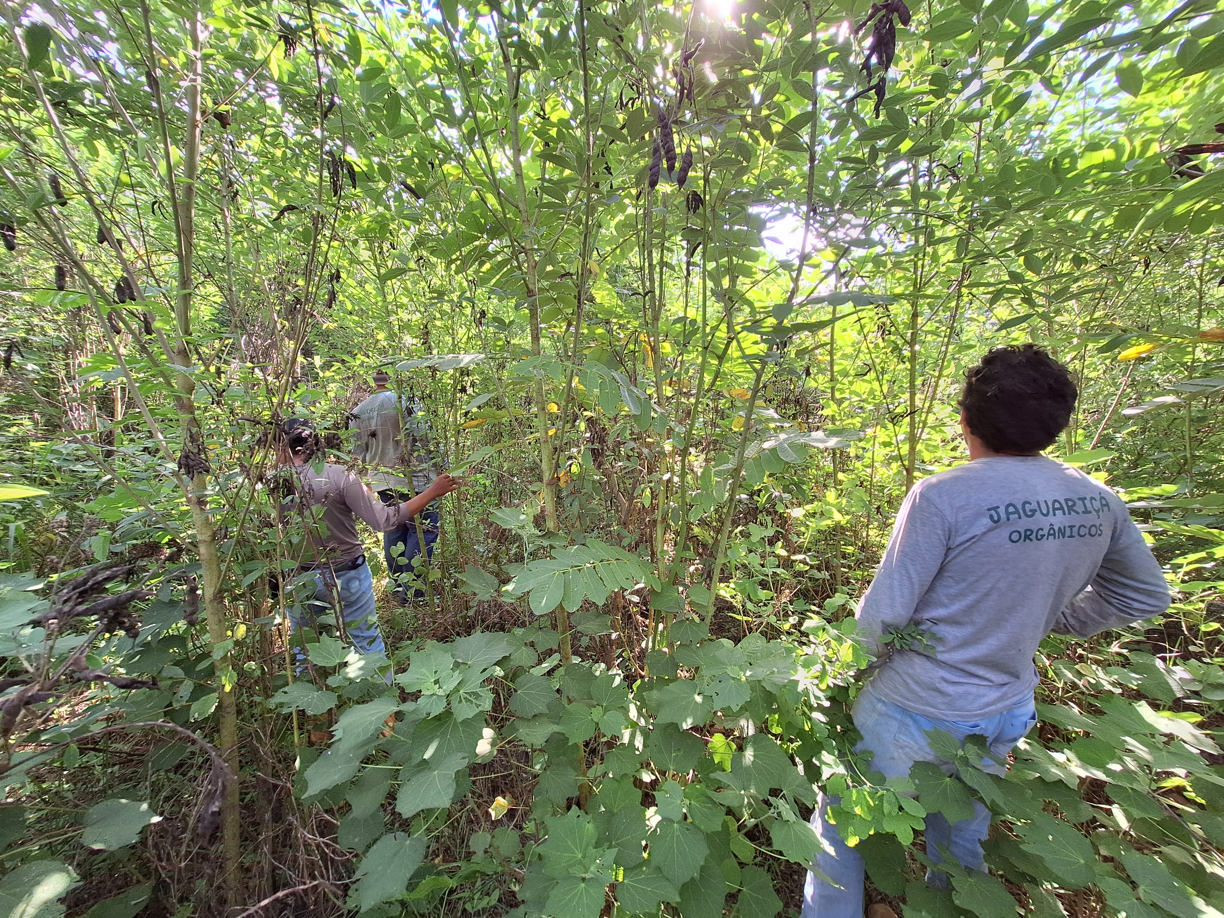 O plantio de 11,7 hectares foi conduzido entre os dias 25 e 28 de novembro de 2023, culminando em todas as operações concluídas em 28 de janeiro. Para a semeadura em linhas, utilizou-se um implemento sulcador para facilitar a abertura dos sulcos em um espaçamento de 1,5m. O feijão-de-porco foi semeado separado da muvuca, sendo jogado a cada 30cm. Posteriormente, as linhas foram cobertas manualmente com enxadas. O equipamento foi devidamente calibrado para sulcar uma profundidade ideal, a fim de garantir uma acurácia maior em realizar o sulco.
