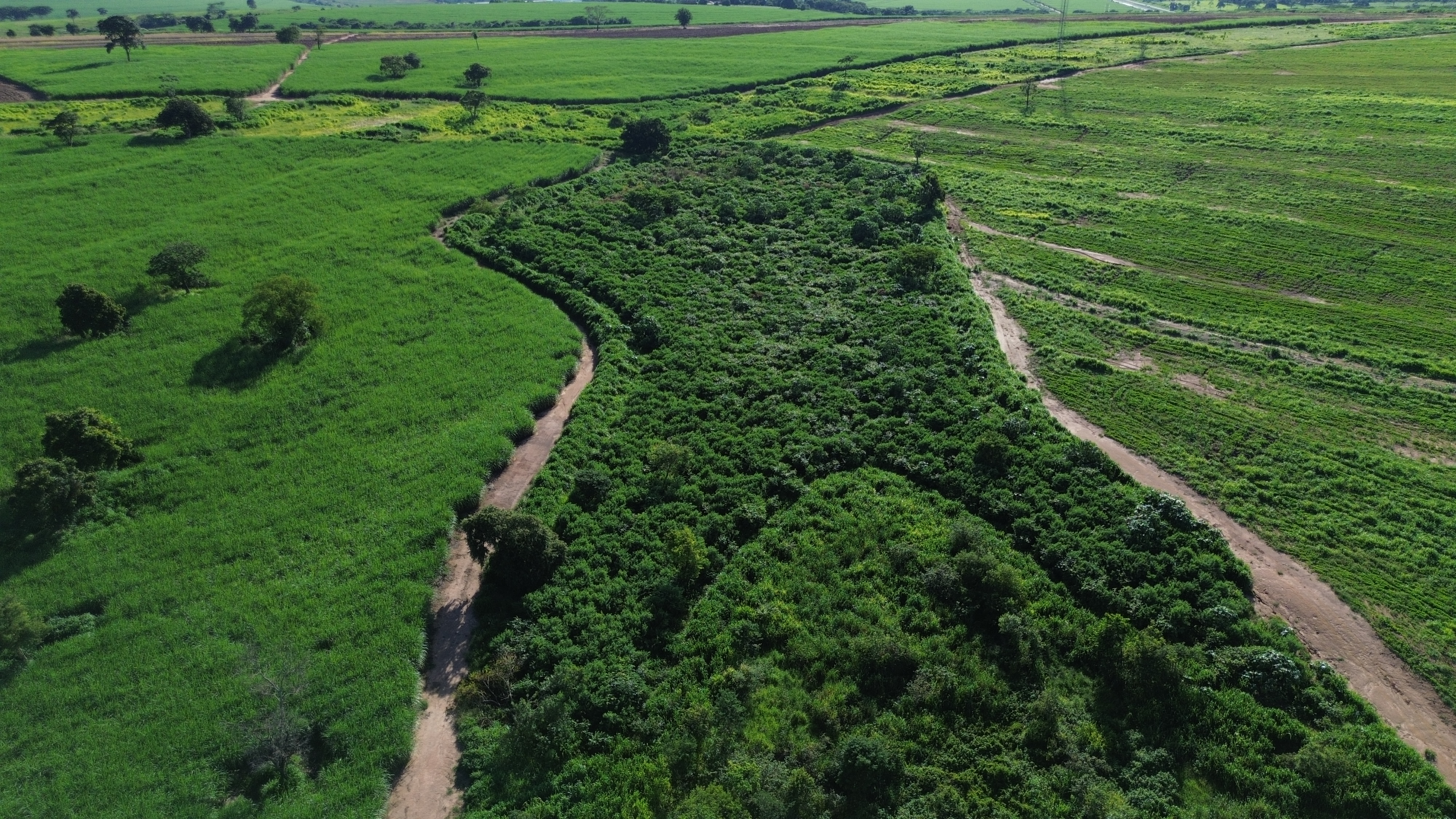 Realizamos três plantios em uma propriedade privada utilizando três técnicas de semeadura direta: a lanço mecanizado, linhas e covetas. O primeiro plantio ocorreu em janeiro de 2019 (a lanço mecanizado), o segundo plantio foi realizado em novembro de 2023 com a técnica de linhas e covetas; e o terceiro em novembro de 2024 através da semeadura contínua em linhas. As áreas fazem parte da Área de Preservação Permanente da propriedade e não apresentavam um potencial significativo de regeneração natural.